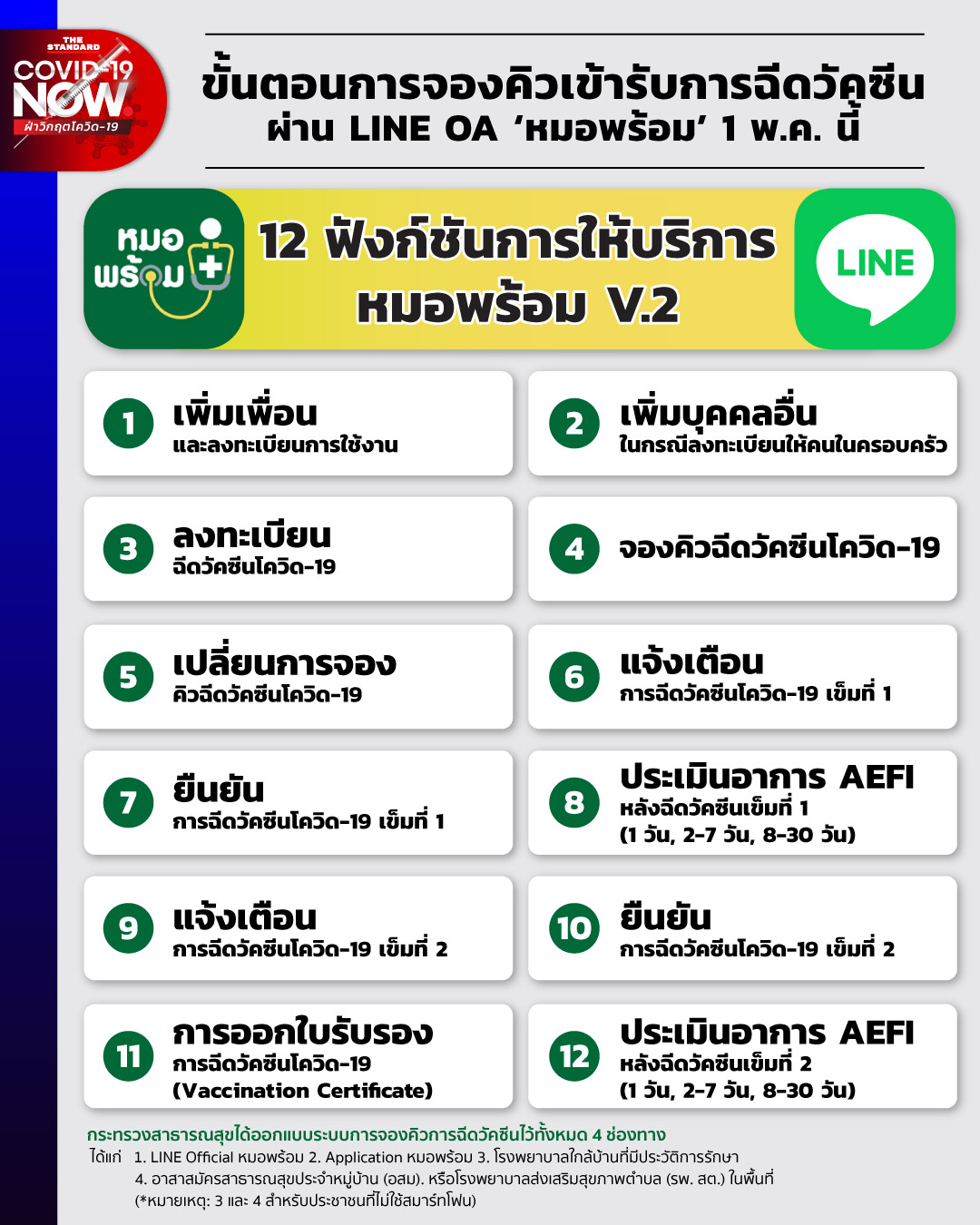 วิธีใช้งาน LINE หมอพร้อม วิธีลงทะเบียน หมอพร้อม ขอรับ ... from i1.wp.com Jun 05, 2021 · ติดตามข่าวสารผ่าน 'คมชัดลึก' line official แอสตราเซเนกา มาแล้ว 7 มิถุนายน 2564 เป็นต้นไป ขอเชิญชาวปทุมธานี ที่จองวัคซีนผ่าน หมอพร้อม รับวัคซีน ณ โรงพยาบาล. Jun 22, 2021 · หมอพร้อม แจ้งปลดล็อกระบบฐานข้อมูลวัคซีนโควิดทั่วประเทศ ให้โรงพยาบาลสามารถจัดคิวนัดหมายให้ประชาชนได้ตามความเหมาะสม วันที่ 22 มิถุนายน 2564. อัปเดต หมอพร้อม ล่าสุดยอดลงทะเบียนวัคซีนโควิดพุ่ง 280,050 ราย; May 01, 2021 · line oa หมอพร้อม 2. มีพนักงานจิตอาสาร่วมปฏิบัติหน้าที่ call center "หมอพร้อม" จำนวน 6 คน โดยเริ่มให้บริการตั้งแต่วันที่ 1 มิถุนายน 2564 เพื่อช่วยอำนวยความสะดวก. Jun 02, 2021 · ทั้งนี้ บสย. จองฉีดวัคซีนโควิดผ่าน หมอพร้อม กทม.ทะลุ 5 แสนราย Apr 21, 2021 · "หมอพร้อม" เวอร์ชั่นใหม่ มาในรูปแบบ line official account (line oa) โดยกระทรวงสาธารณสุข จะเปิดให้บริการอย่างเป็นทางการในวันที่ 1 พฤษภาคมนี้.